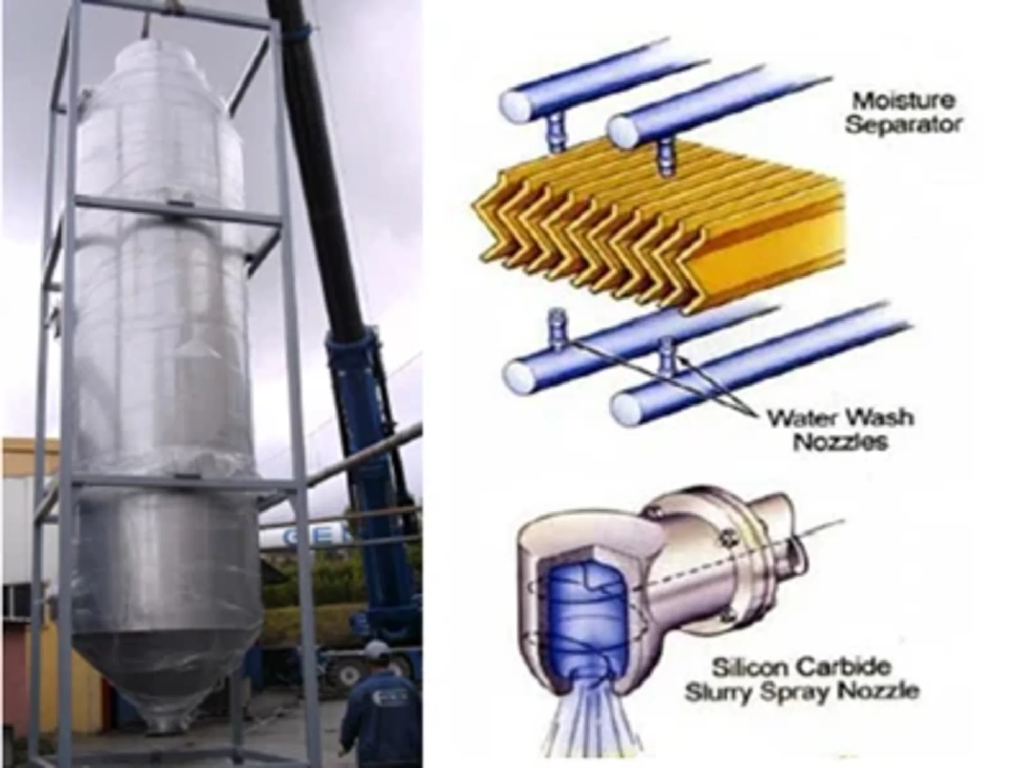 Islak filtre çökertme havuzu, taze hava brülörü, sirkülasyon pompaları, PH kontrol ünitesi, dozajlama sistemi ve diğer donanımları ile birlikte paket bir ünitedir. Sistemin çalışması; Sirkülasyon pompaları yukarıdan nozullar ile basınçlı bir şekilde püskürtülürken duman gazı yıkanmakta kükürt çökertilmektedir.