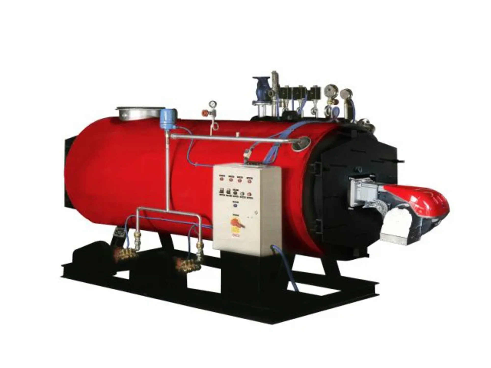 Farklı brülörler ile çalıştırabilme kolaylığı sunmaktadır, brülörü, armatürleri, pompası, su hazırlama ünitesi ve kondens tankı ile paket haldedir.